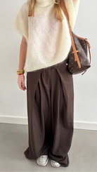 Lynn Pants onze nieuwe favoriet, en dat zie je meteen! De Lynn Pants in warme chocoladetint combineert tijdloze elegantie met een speelse twist dankzij de stijlvolle overslagflappen aan de voorkant. Dit detail zorgt voor een flatterend silhouet en geeft de broek nét dat beetje extra.