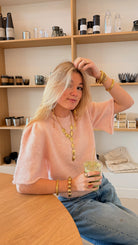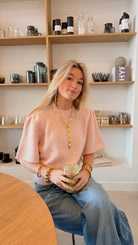 De Marie Knit is een echte feel-good favorite! Dit zachte truitje in een lieve roze tint geeft je outfit meteen een frisse, feminine vibe. De subtiele schoudervulling zorgt voor een mooi silhouet en een trendy touch. De fit is een beetje cropped, maar niet te kort: hij valt precies net boven je broek, waardoor hij perfect combineert met een high-waist jeans, pantalon of rokje. Super comfy, makkelijk te stylen en ideaal voor elke dag waarop je er moeiteloos leuk uit wilt zien!